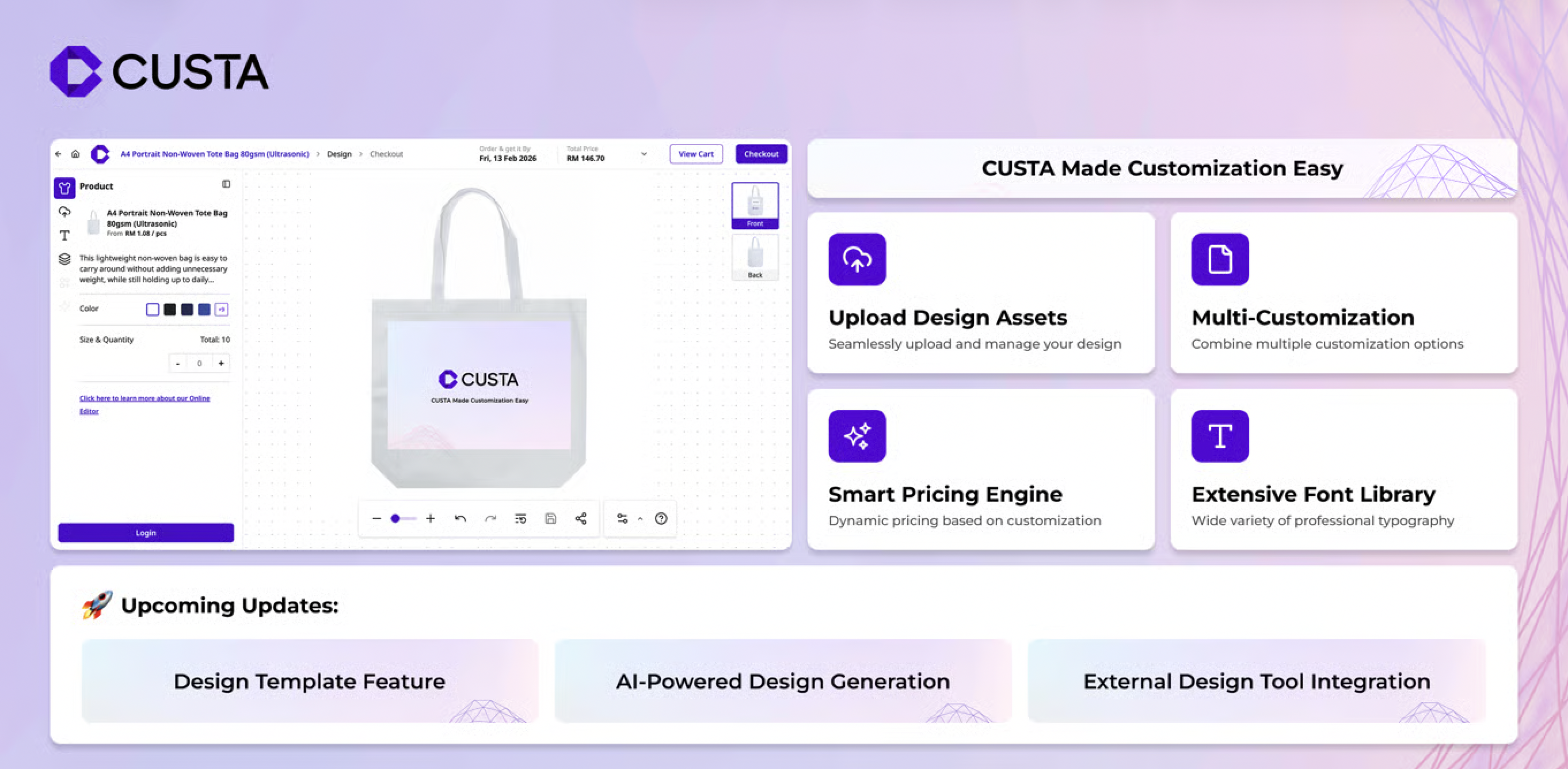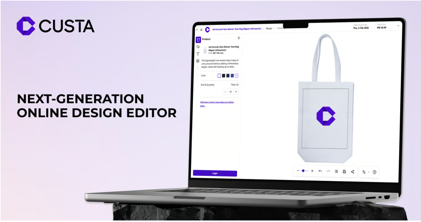 CUSTA empowers SMEs with unprecedented branding flexibility through its new editor, featuring automated cost optimization and a constraint-free online design canvas.